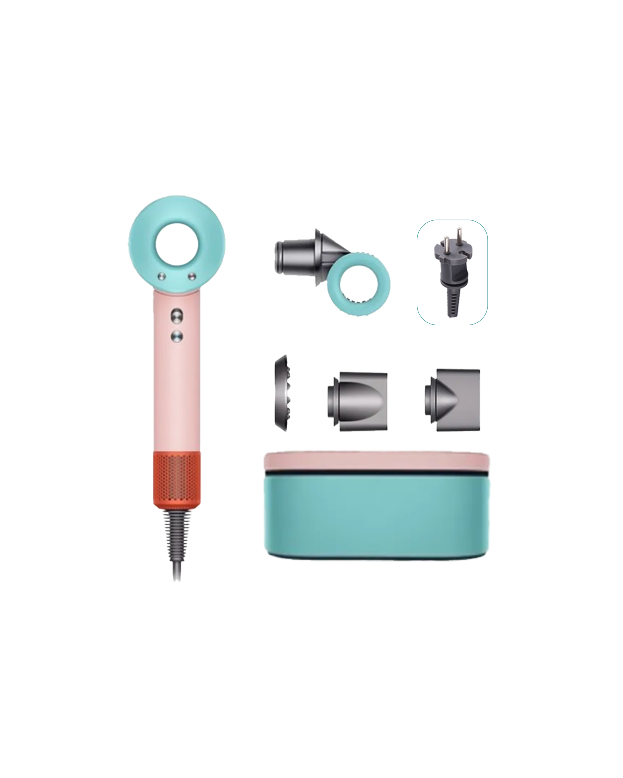 Четыре уровня нагрева: 100 °C — быстрое высушивание и укладка волос. 80 °C — стандартное высушивание волос. 60 °C — бережное высушивание. 28 °C — поток прохладного воздуха.