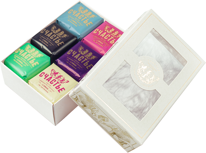 - Пралине с кешью и розеллой в молочном шоколаде.