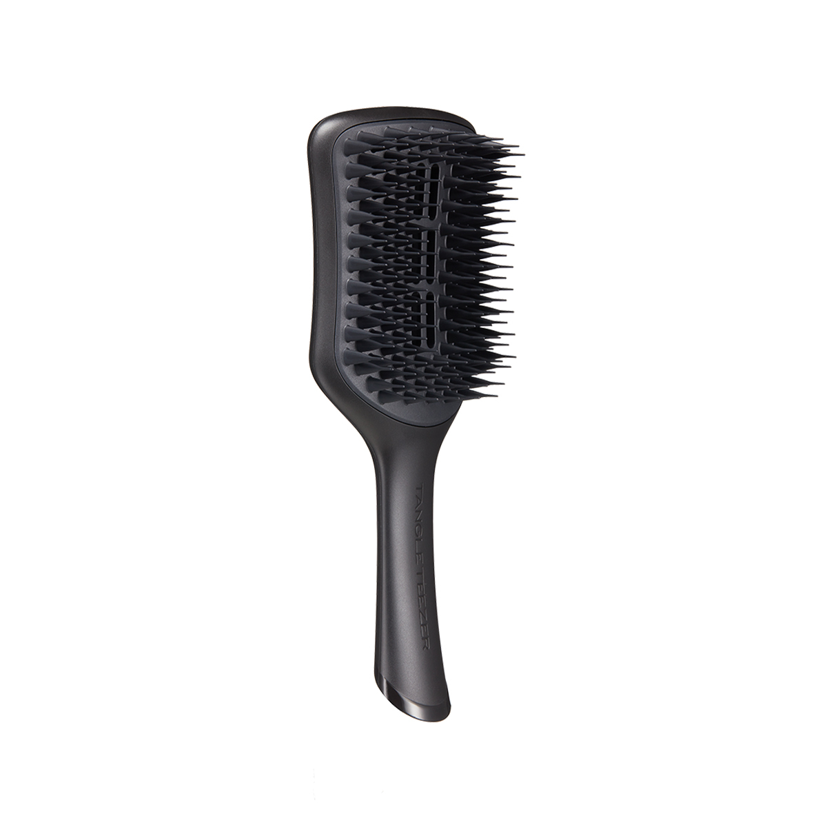 Tangle Teezer Easy Dry & Go Large Jet Black – расческа для быстрой сушки волос феном. Модель создана специально для длинных, густых или вьющихся волос. Представлена в черном цвете. Увеличенный размер, а также большее число зубчиков и отверстий в корпусе расчески, по сравнению с классической моделью Easy Dry & Go, позволяют легко и быстро высушить пряди, создать объем у корней и придать гладкость и блеск густым или вьющимся волосам. Запатентованные зубчики в форме бутылочек не тянут и не повреждают волосы, позволяя прядям свободно скользить между ними. Специальные отверстия в расческе свободно пропускают горячий воздух, сокращая время сушки. Благодаря эргономичной форме, расческу удобно держать в руке, а закругленные края помогают легко уложить пряди у лица.